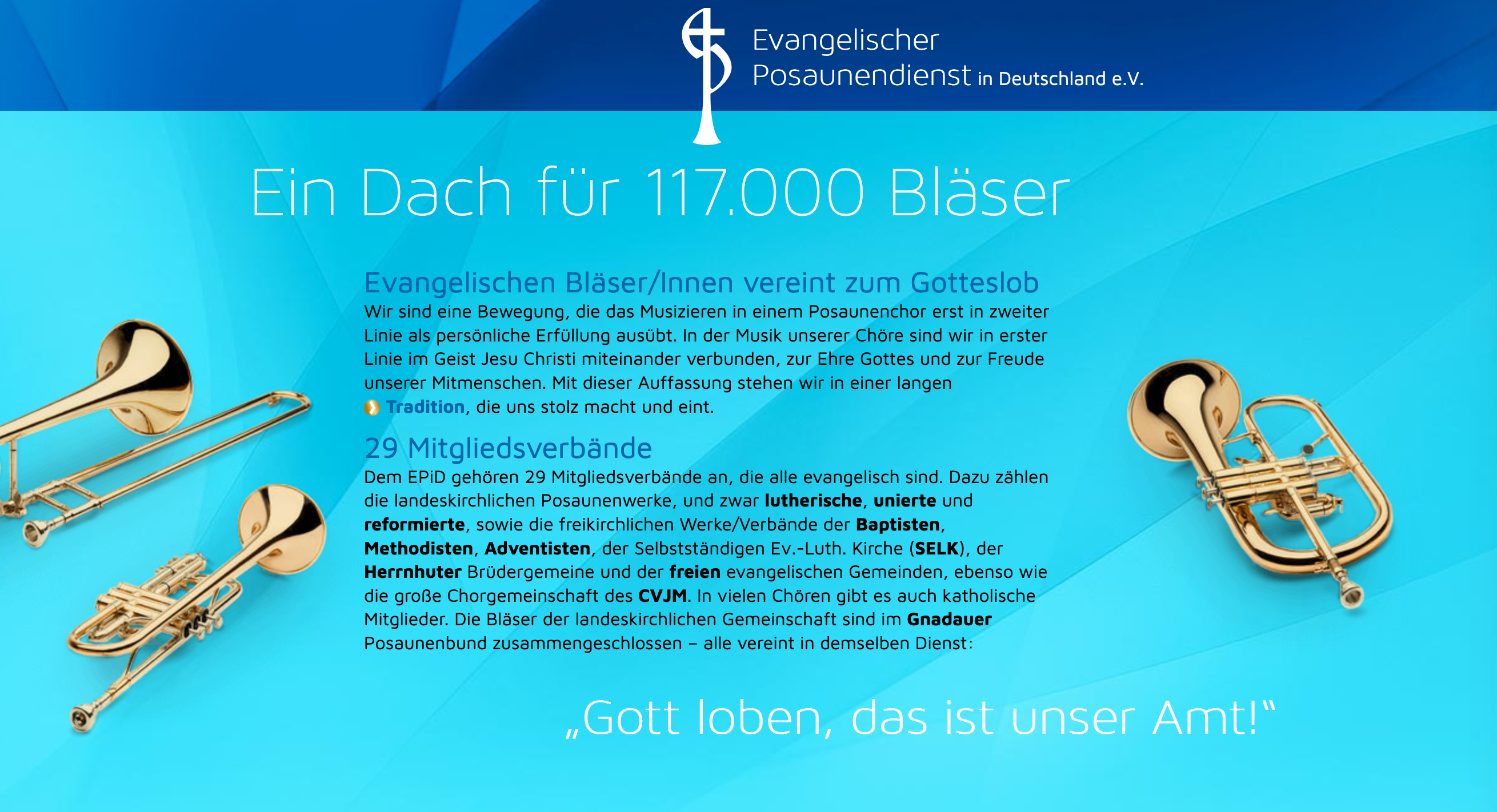 Mit Bläsermusik dem Reich Gottes dienen und den Menschen Freude bereiten – das ist unser Anliegen seit 1925.
